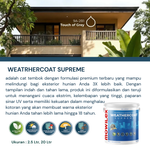 MOWILEX WEATHERCOAT SUPREME cat tembok exterior berkualitas tinggi yang diformulasikan khusus sehingga tahan terhadap iklim tropis dan cuaca ekstrim di Indonesia.